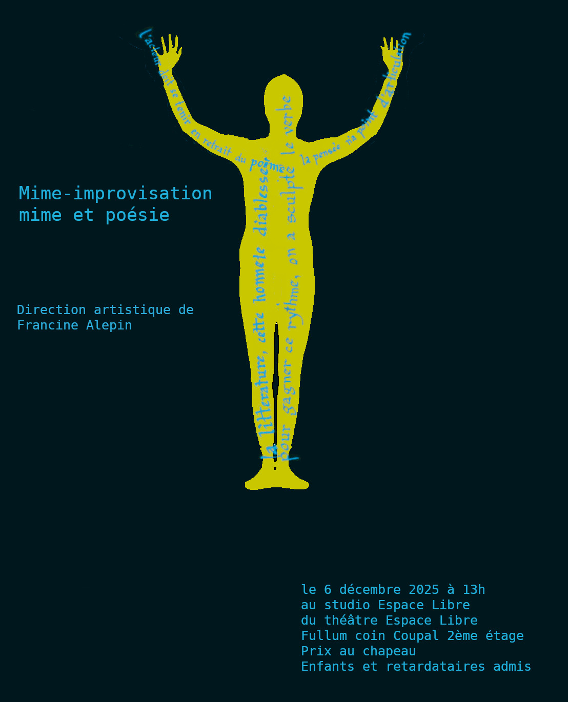 Initié par Solo Fugère et Tania Hernandez, ce projet est né d'un désir de pratiquer l'art du silence ensemble, sans la pression de la performance commerciale. Nous ne sommes pas dans une logique de "match" ou de compétition, mais de recherche artistique partagée avec le public.