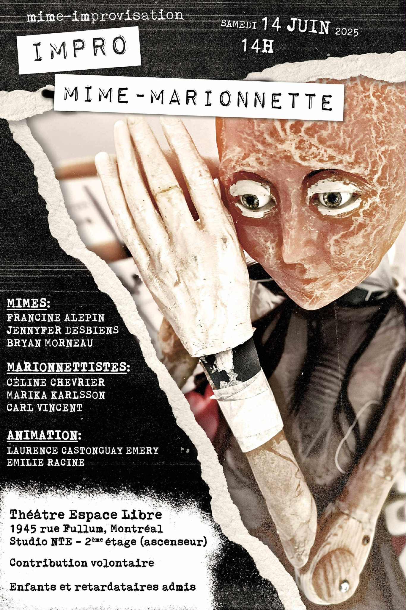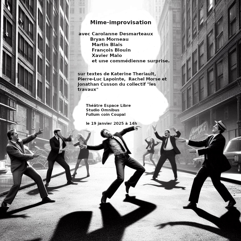 Impro-Mime est une initiative lancée par des artistes mimes de la région de Montréal. C'est un espace exploratoire et non-compétitif. Un laboratoire pour expérimenter le mélange du mime decrouzien avec d'autres disciplines.